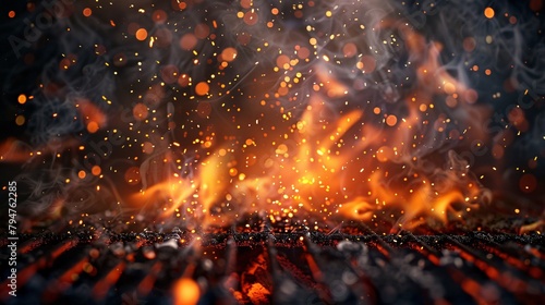 Fiery sparks and smoke overlay on a transparent background, depicting realistic grill heat glow and flying orange sparkles in a vector illustration