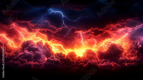 Fiery Stormy Sky with Bright Lightning