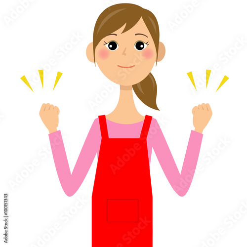 エプロン姿の女性 ガッツポーズ