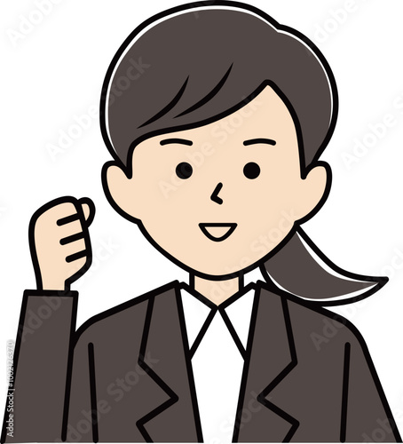 ガッツポーズでやる気を表すスーツ姿の女性