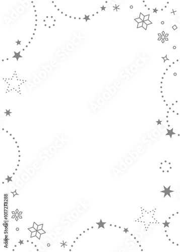 星とキラキラエフェクト、雪の結晶のデコレーションフレーム、冬のイメージデザイン、縦向き