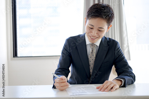 記載するビジネスマン
