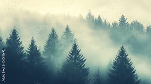 霞がかった山林