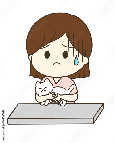 猫が動かないように抱えているが不安な看護師さんのゆるかわイラスト
