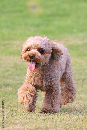 しゃぼん玉舞うドッグランで遊ぶトイ・プードル
