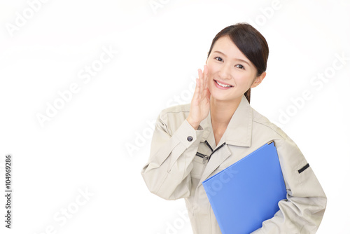 声援を送る女性作業員