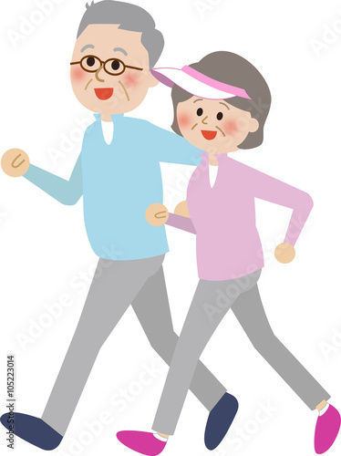 ウォーキングするシニアカップル
