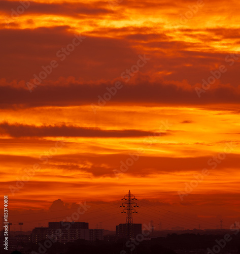 朝焼けの雲と鉄塔