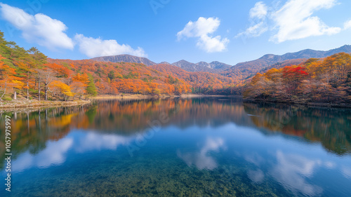秋の湖と森の彩り