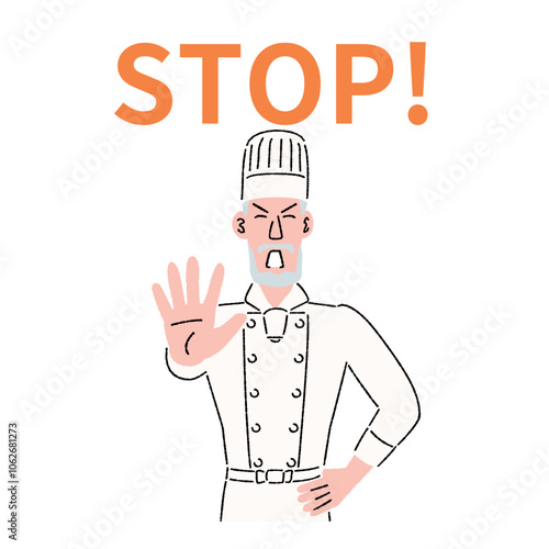ベテランの料理人が抑止するポーズ