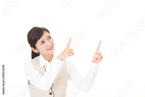 指示する笑顔のビジネスウーマン