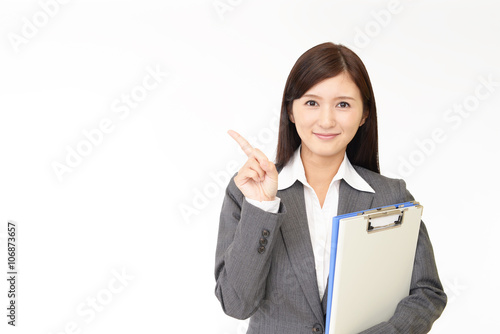 指示する笑顔のビジネスウーマン