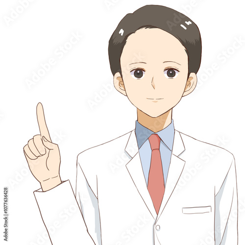 指を指す白衣の男性 笑顔