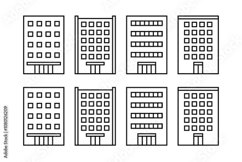 様々なオフィスとビルのアイコンセット