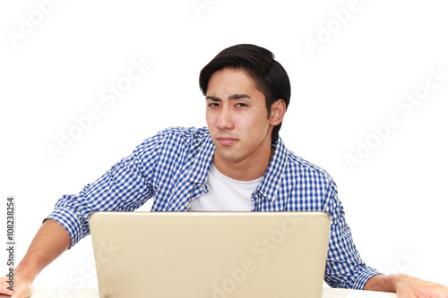 疲れた表情の青年