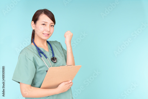 ガッツポーズの女医