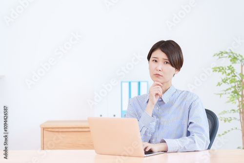 パソコンで仕事する考える女性