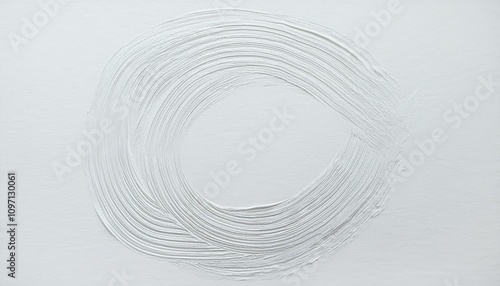 흰 캔버스 위에 물감으로 그려진 원형 브러시 스트로크