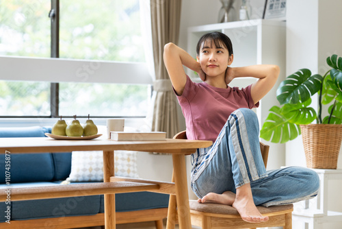 家でくつろぐ若い女性
