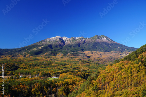 秋の開田高原 九蔵峠から眺めた御嶽山と紅葉