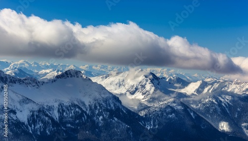 산봉우리 위로 하얀 눈과 함께 흐릿하게 드리운 구름