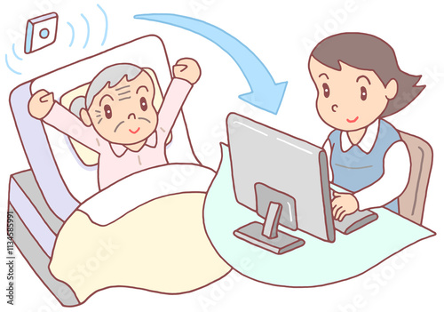 介護のイラスト - 見守りサービス・安否確認・遠隔監視・独居老人・見守りスタッフ