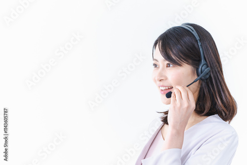 コールセンターで電話対応をする若い女性