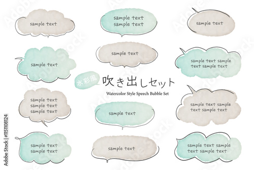 くすみカラーのシンプルな水彩風の吹き出しセット