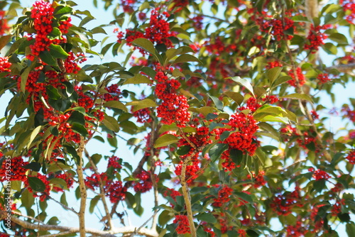 赤い実を付けるクロガネモチ