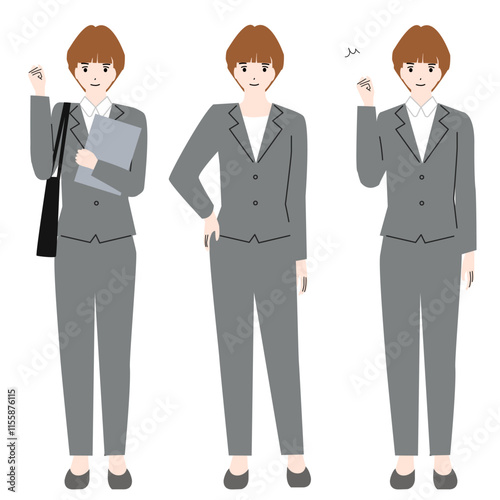 スーツ姿の若い女性の全身アバターセット