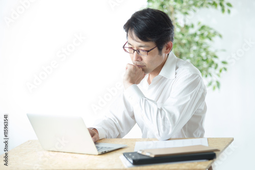 デスクワークするミドル男性