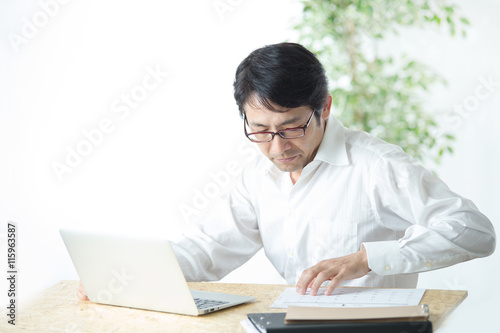 デスクワークするミドル男性