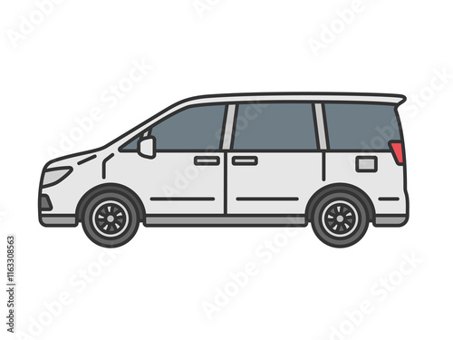 横から見た、白色のミニバンの自動車(線画カラー)のイラスト
