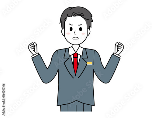 接客をする男性販売員のイラスト 男性のビジネスマンの上半身イラスト