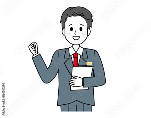 接客をする男性販売員のイラスト 男性のビジネスマンの上半身イラスト