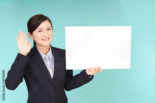 ホワイトボードを持つビジネスウーマン