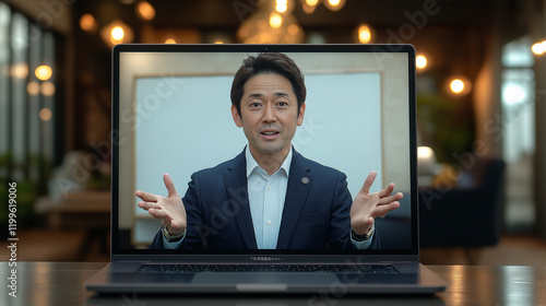 パソコンの画面に映る男性