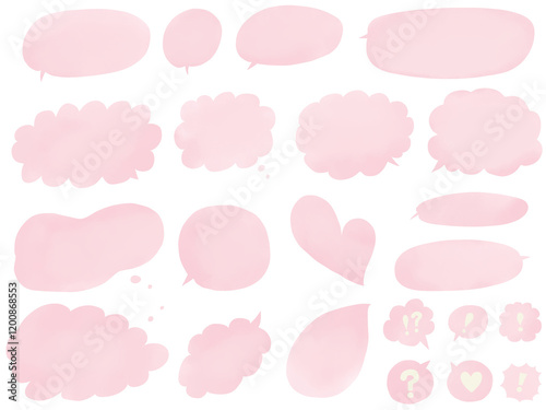 吹き出し:水彩風のピンクの手描きフキダシのセット