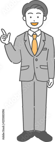 指差しする若いビジネスマン/先生の全身イラスト