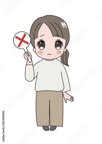 バツのプラカードを挙げているかわいい成人女性のイラスト