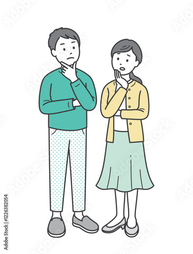 顔に手を当てて悩む成人男女夫婦