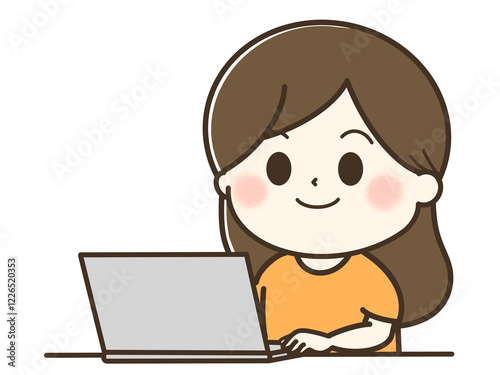 パソコンを使う女性のゆるかわイラスト