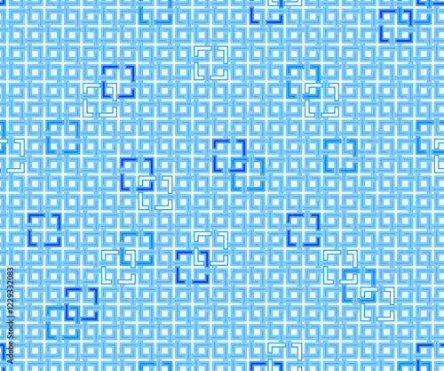 水色ランダム配置の角繋ぎ文様シームレス背景