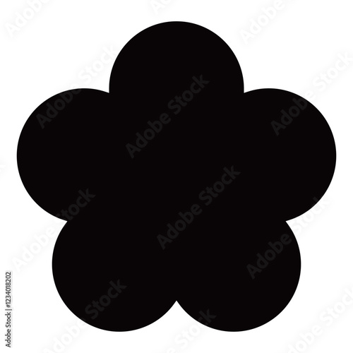 梅の花の形のイラスト素材 コピースペースあり 背景透過 白黒