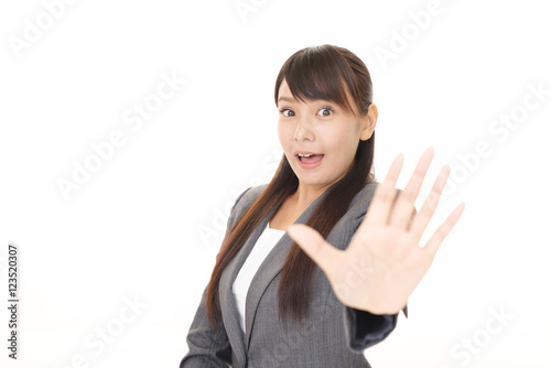 ストップのジェスチャーをする女性