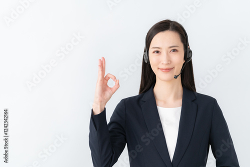 白バックの若い女性のオペレーター