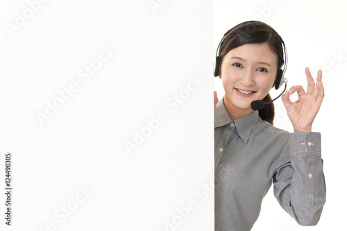 ホワイトボードを持つ笑顔のオペレーター