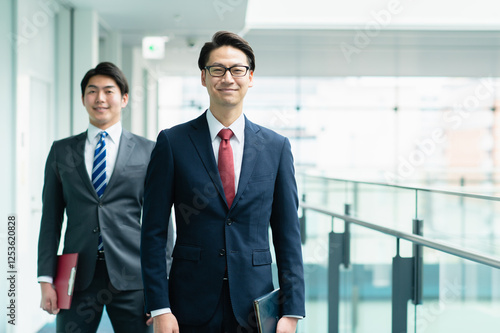 オフィスの廊下を歩くビジネスマン【撮影協力:スカパー東京メディアセンター】