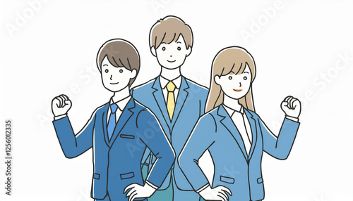ガッツポーズする若いビジネスマン・ビジネスウーマン