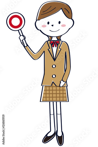 茶色のブレザーの学生 女子 学生 全身 ○